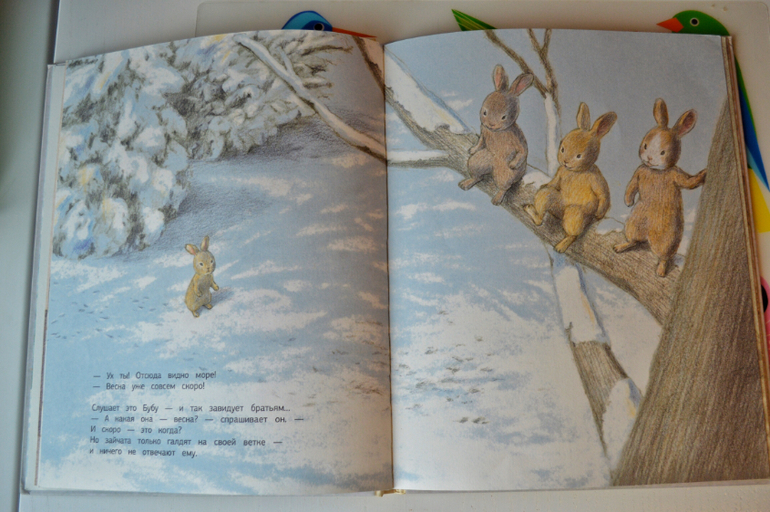 "Скоро-скоро". Именно она была достаточно продолжительное время самой любимой. Маленькая Даша складывала губки трубочкой и показывала, как Бубу выдыхает белый пар, поднимала ручонки и показывала огромного медведя, прыгала, как зайки и грозила пальчиком зайцу, который один без мамы! ушёл из дома))