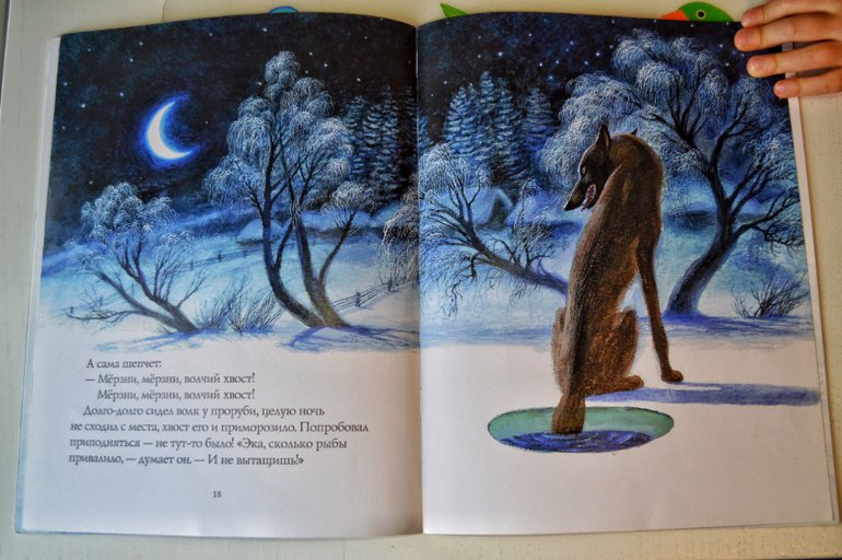 Книга обязательная к покупке. Устинов- один из самых мной любимых российских детских иллюстраторов. Известная всем поучительная история "битый не битого везёт ". В детской литературе очень важны иллюстрации. Так вот здесь они на высоте! Традиционный фольклор, реалистичность, свет. Здесь мы подмечаем, что небо не всегда синее, а снег белый. А теперь и на улице дочь обращает на это внимание. Ведь вечером при особом освещении снег может быть синим, серым, чёрным. А вообще снег бесцветен. И белым его опять же делает дневной свет.