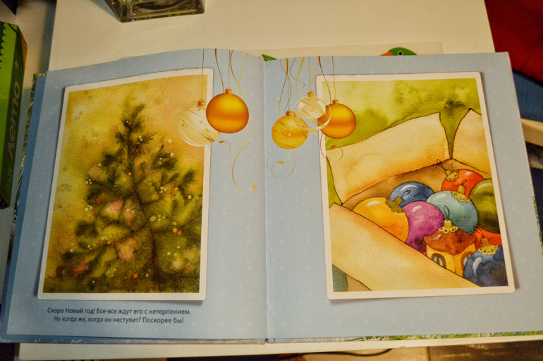 Когда я покупала это милейшее издание, то не отнеслась к ней серьёзно. Просто добила корзину. Но она стала очень востребованной у дочки. Маленькие жизненные зарисовки о подготовке к празднику, детские иллюстрации-что ещё нужно для новогодней книги?)