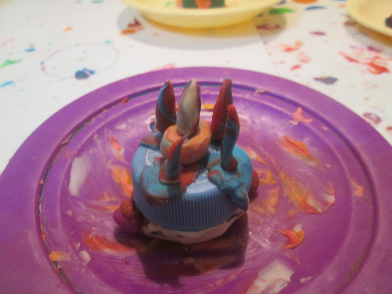 Мистер Умелец или Очумелые ручки (поделки, аппликации, интересные находки, идеи и задумки)А мы продолжаем эксплуатировать ненужные крышечки. И на этот раз пришла идея - слепить на них пироженки. И мелкую моторику отлично развивает (ведь крышечки то маленькие) и место очень много экономит ( так как готовые шедевры дети отказываются разбирать обратно). Фото под катом.