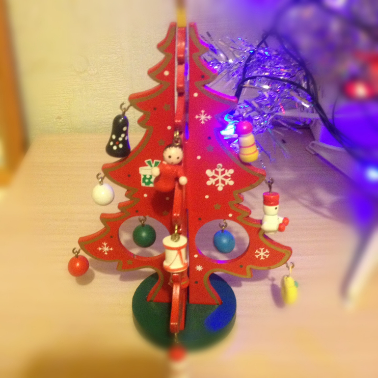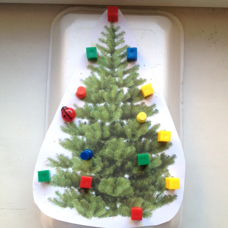 Тренируем мелкую ооочень мелкую моторику, стараясь нарядить маленькую елочку крошечными игрушками. Обожаю эту елочку, она деревянная. На окошке у меня стоит теперь.