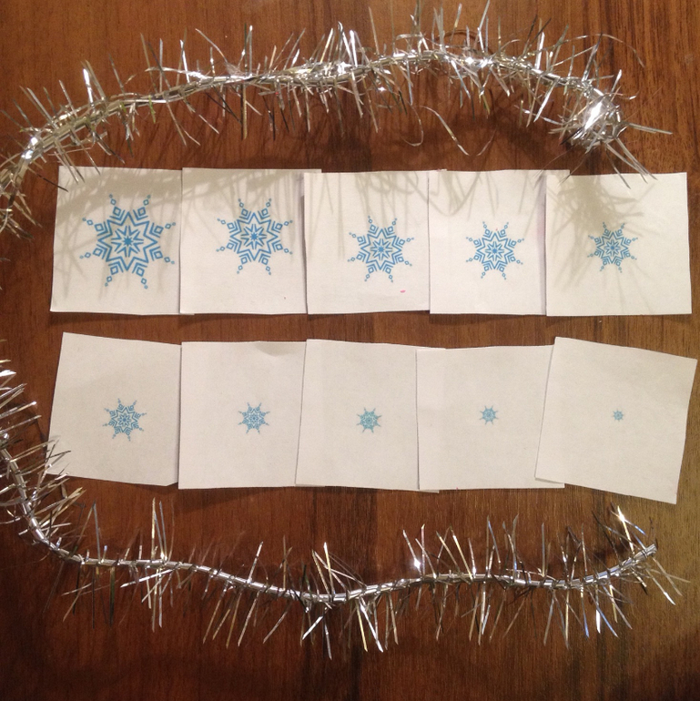 И снежинки тоже по размеру. Специально дала много снежинок. Разложил все правильно!