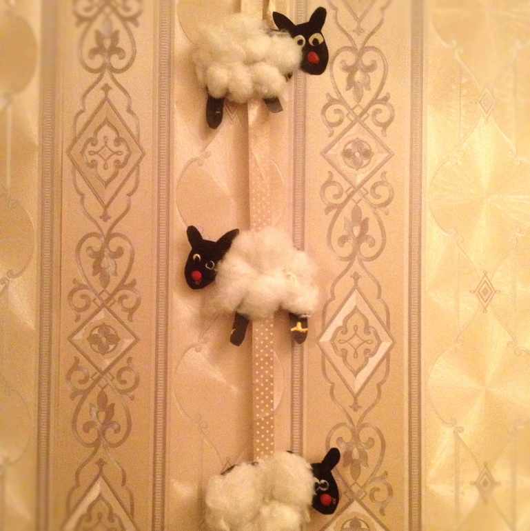А это дети сделали пушистых овечек, я их повесила на ленточку, висят возле двери.