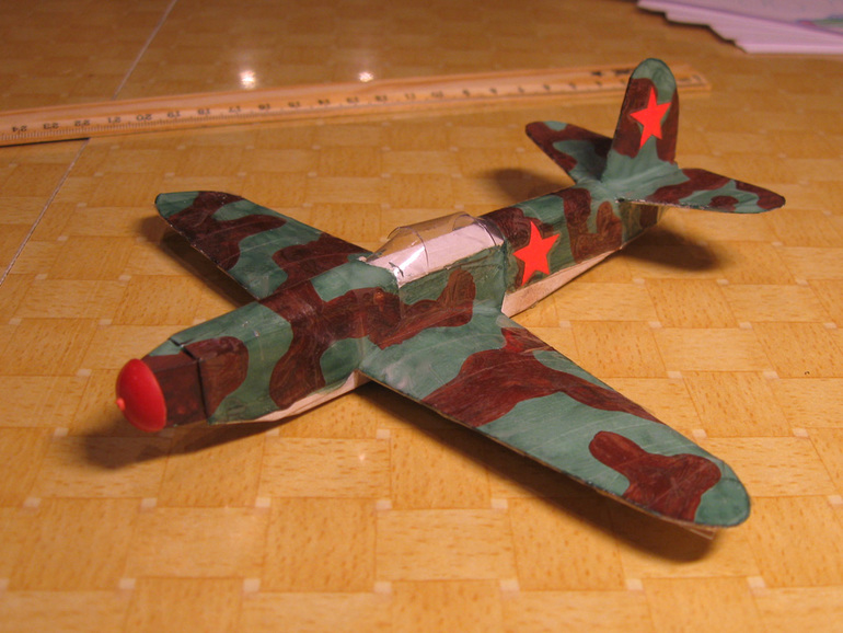 Как вариант, делюсь опытом создания такого вот образца военной техники (молодёжь будет в восторге): картонный Як-9. И всего-то за два выходных дня)))