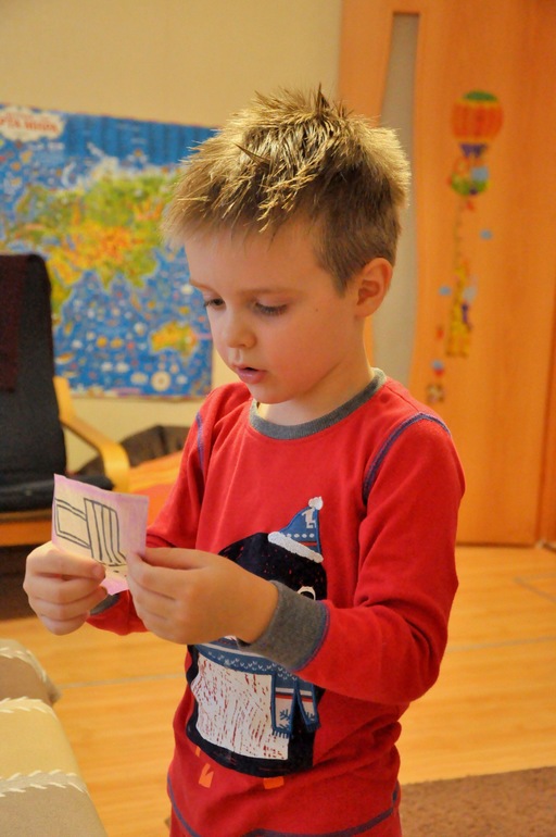 Перед кухней линия оборвалась и сын, не сходя с места, должен был найти другую записку...