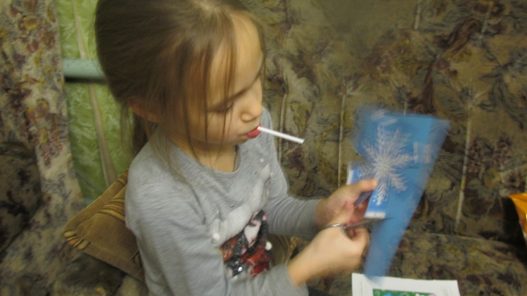 Тоже долго и мучительно соображали, что это кресло. В кресле находит задание - аппликация на зимнюю тему и подсказка.