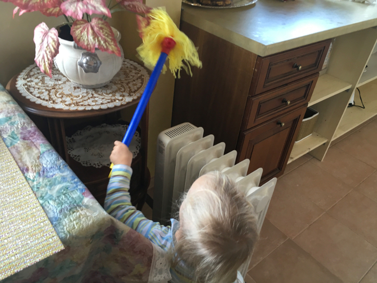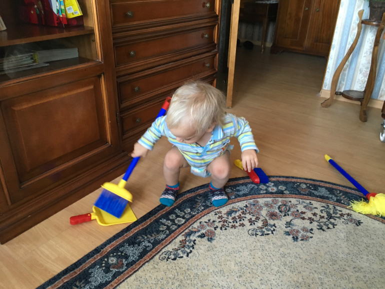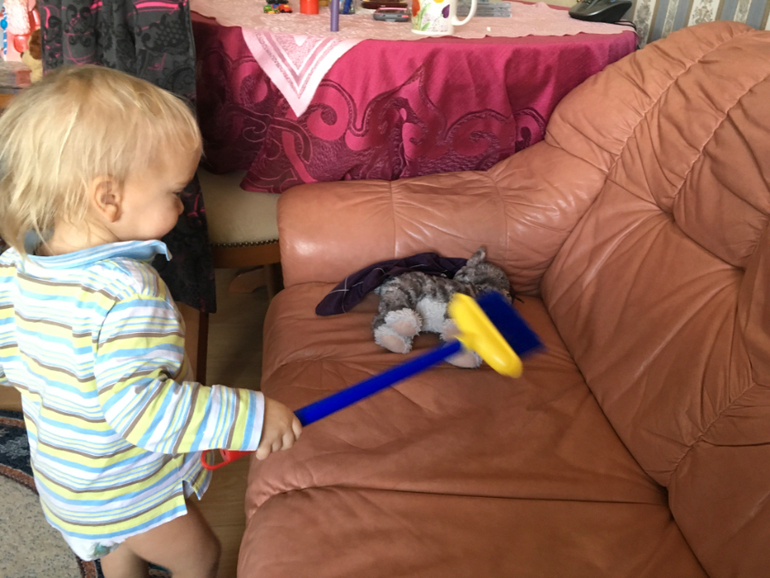 Ну и бытовые навыки совпадают видимо с соответствующим сензетивным периодом позже их уже ничего не заставишь сделать . Помогает, старается, очень старается, всегда бы так!!!