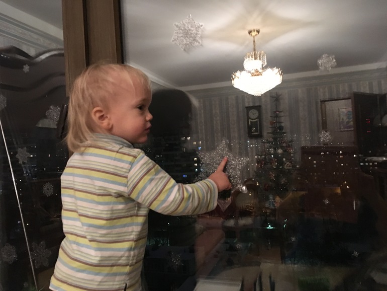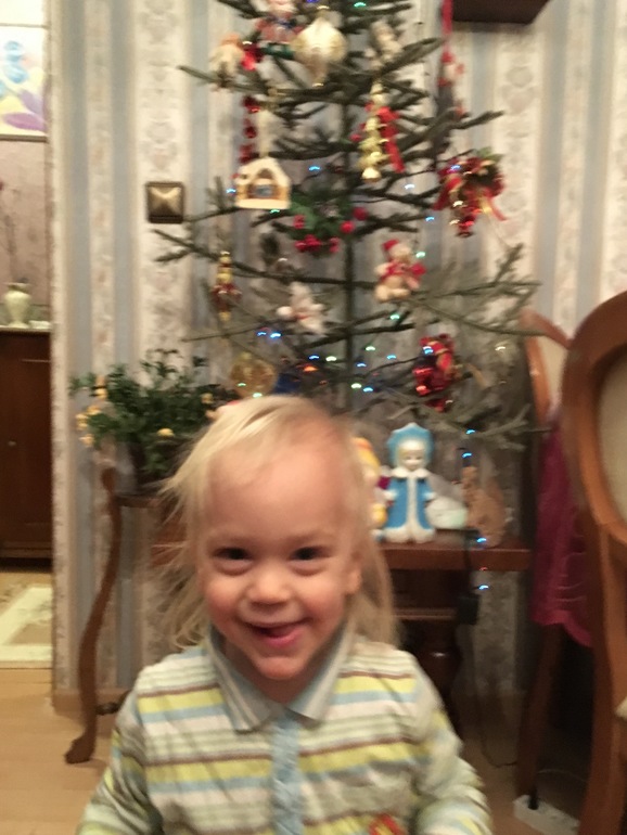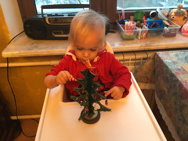 Пока наряжали, чудесно провели время. Активно помогал, приносил каждую игрушечку, очень интересовался, внимательно рассматривал. Вспоминаю, что со старшими это был ежегодный кризис жанра) процесс заканчивался повсеместной ссорой и криками без летального исхода в лучшем случае. А в этот раз все прошло тихо и мирно, за исключением того, что кое-кто юлил и периодически создавал риск падения ёлки на пол.