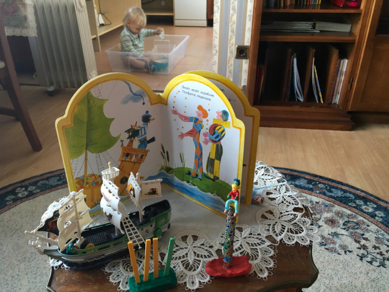 Речь. Полный стопор. Зациклились на основном десятке слов, как бы тут ЗРР такими темпами не заполучить. Зато английский цветёт и благоухает! За счёт этого родная речь может тоже успешно буксовать. По-прежнему массируем руки и пальцы, гримасничаем, дуем, мусолим Батяеву, ввели новые сказочные и стихотворные постановки