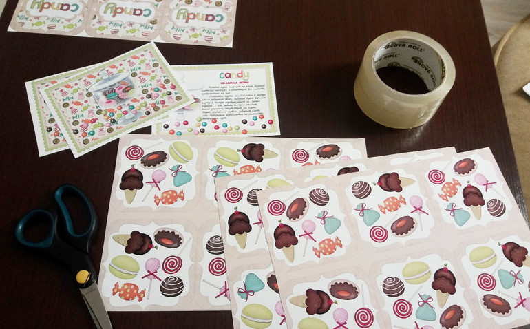 Все готовые распечатанные листы я заклеиваю обычным прозрачным скотчем (получается прочно, надежно и эстетично)), затем разрезаю на карточки. Ура! Все готово! Можно играть)