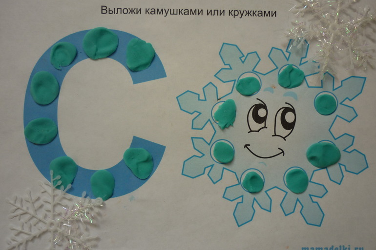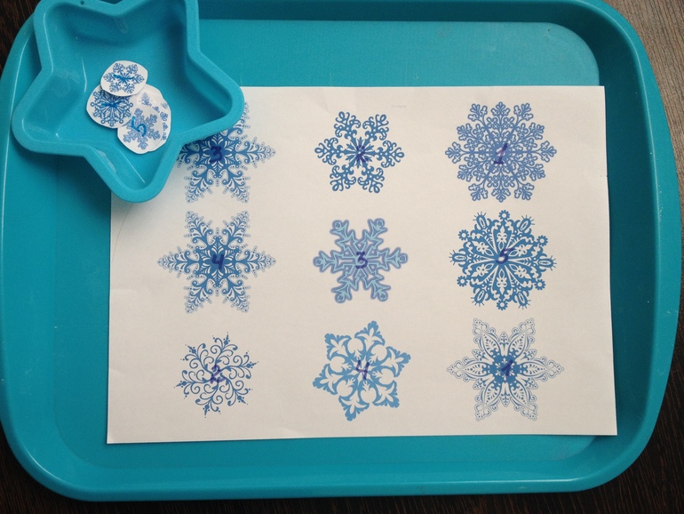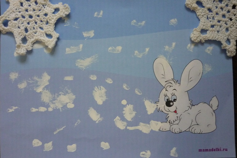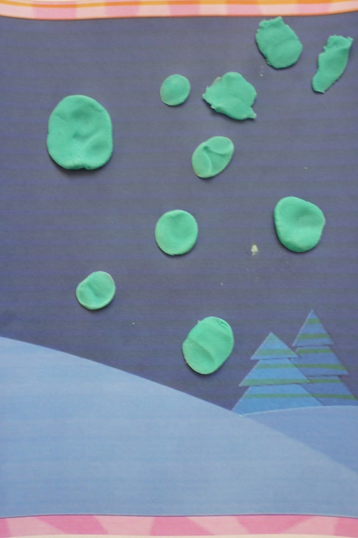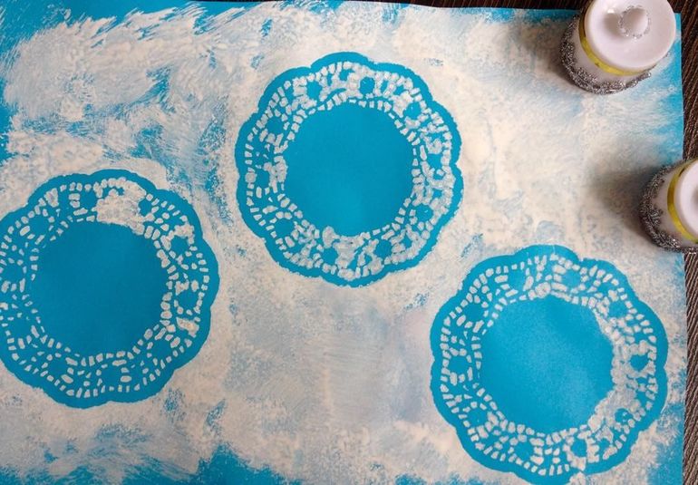 8.Снежинки- Саша рисовала губкой по трафарету (салфетка)