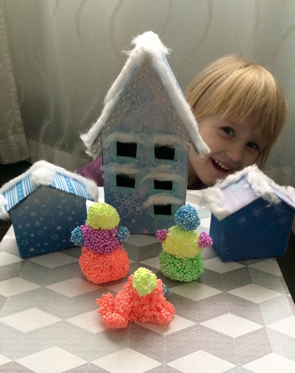 12. Шариковые снеговички)) слепили, а потом дочка расплакалась, что пластилин смешался.и тут мелкая моторика пошла-мы разделяли его(((