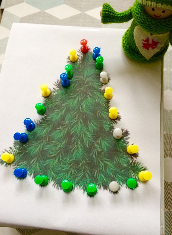 украшаем елочку фонариками- Саша сама выбирала украшение и располагала на елке