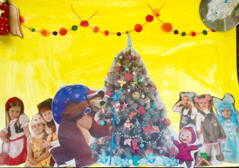 Праздничная елка- а вот вокруг гирлянды и салют- так художник сказала)) а вот в правом углу -это луна))))) ночью только салют)))