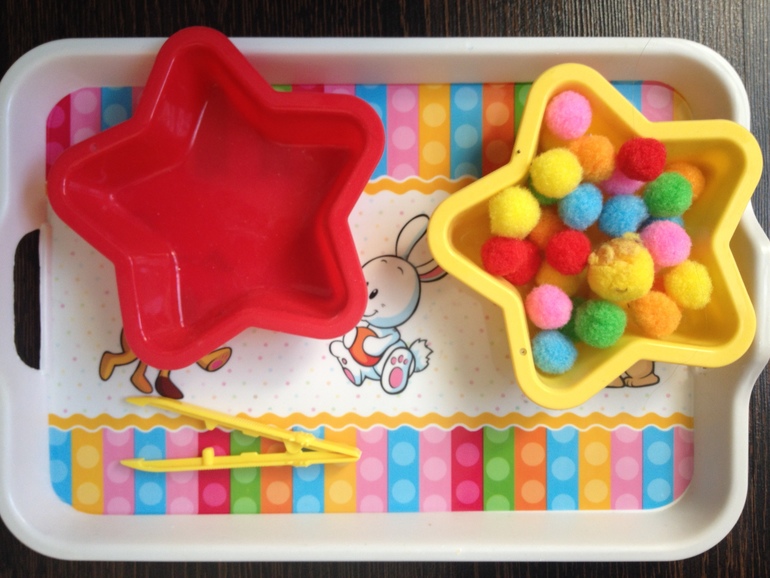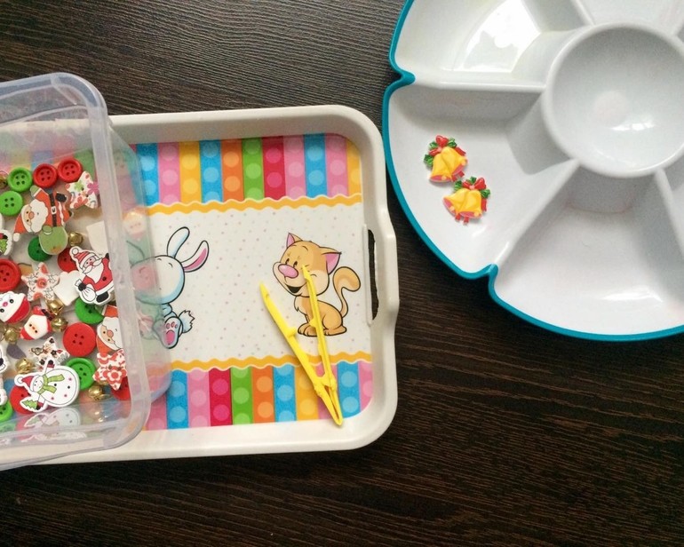 Что-то вроде сенсорной коробочки получилось- дочка сортировала пинцетом