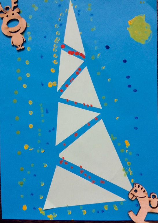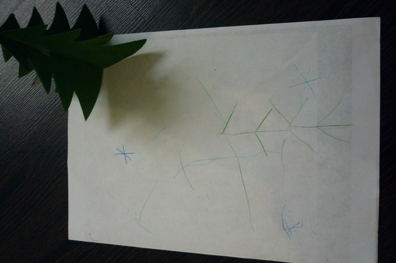 а вот это самый ценный рисунок- Сашулина первая елочка-нарисована самостоятельно!!! (вот только перевернуть бб не дает(( рисунок занял почетное место в папочке-творилок