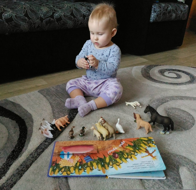 Марго с их помощью и благодаря фигуркам уже выучила названия некоторых животных, на всех показывает, где у кого носик, глазки, ротик.