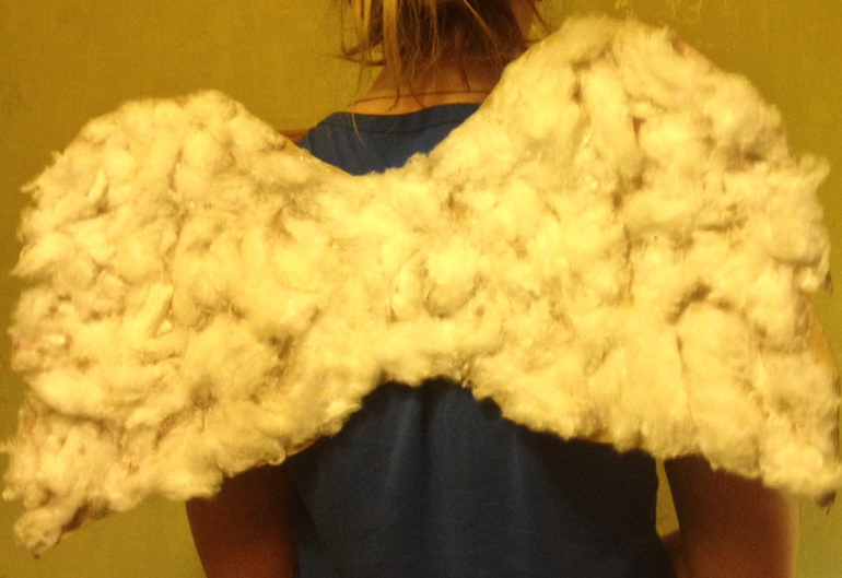 Обклеила кусочками ваты и приделала две резинки, чтоб надевать на плечи.