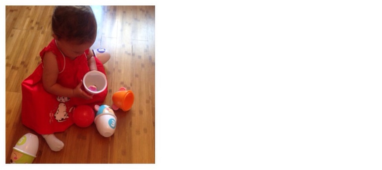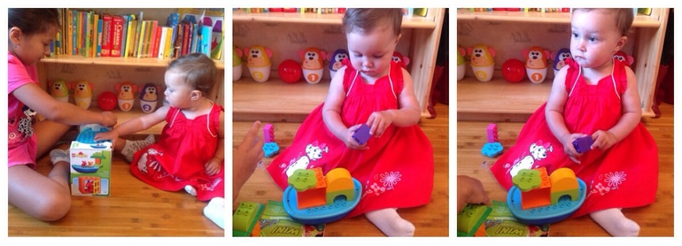Полноценно в боулинг пока только старшие играли, именинница только прятала внутрь пустышку и куколок, дальше будем учить цвета.