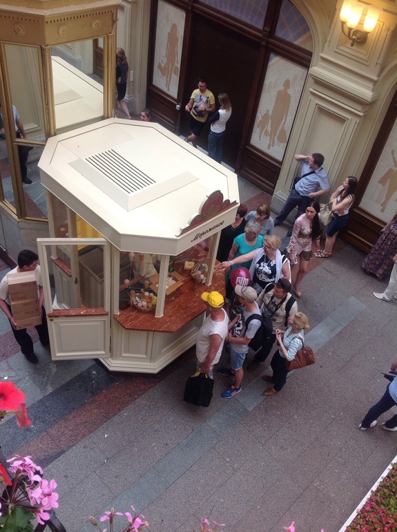 У фонтана в центре ГУМа, можно было получить мороженое из рук звезд:) я правда узнала только одну звезду... Владимира Кристовского...
