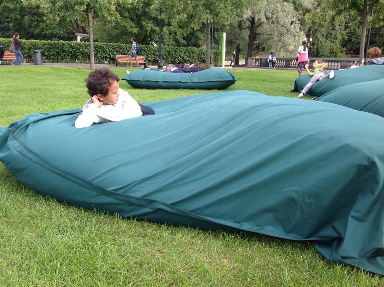 Пасмурный летний день в парке хорош отсутствием большого скопления людей, и свободными подушками, на которые в прошлый раз нам совсем не удалось прилечь:))