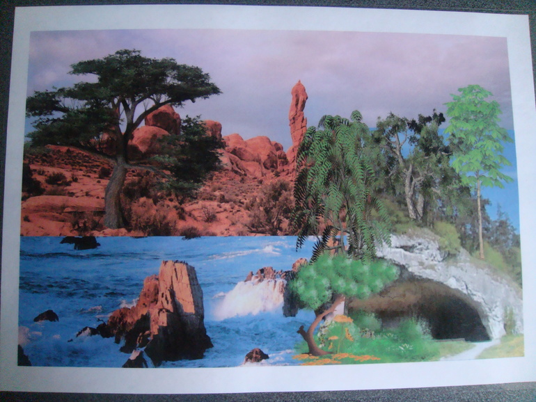 Для игры нужны и пейзажи, где будут разворачиваться действия. Сделала их и для динозавров:
