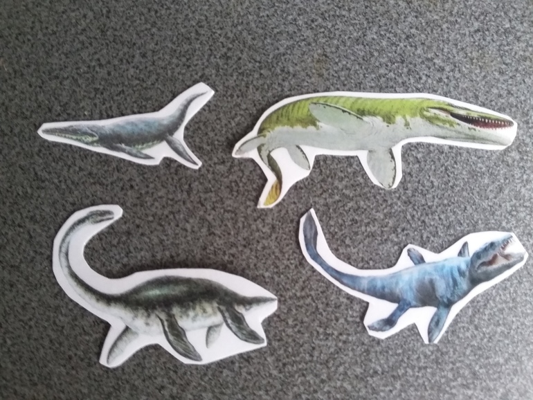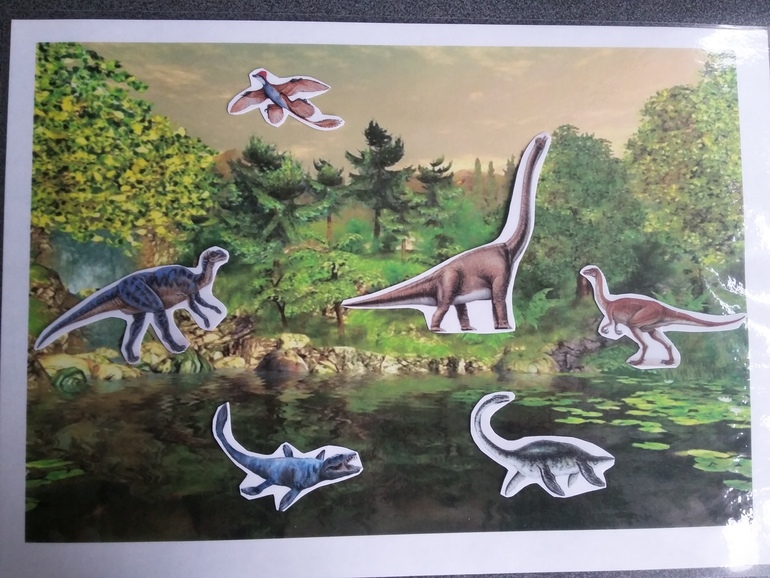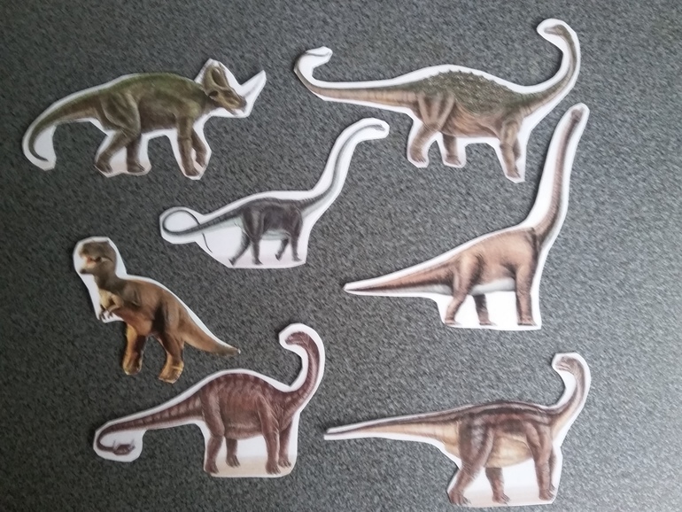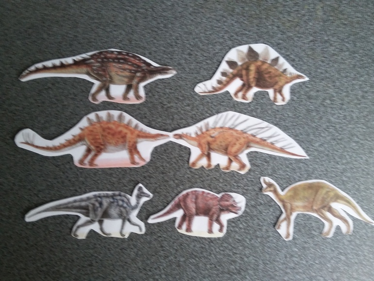 Затем вырезала заламинированные фигурки. Получились динозавры высокие: