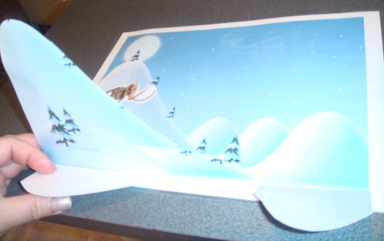 На пейзажи на скотч прикрепила отгибающиеся элементы. Все сугробы у меня многослойные: