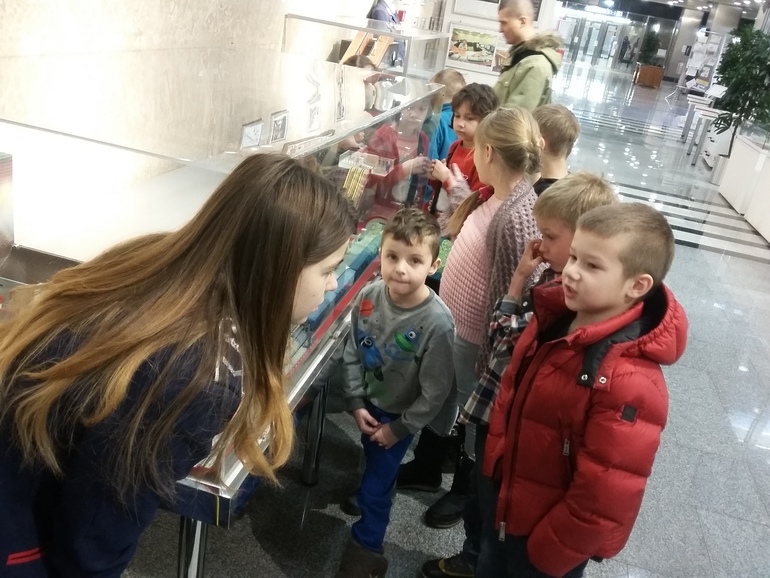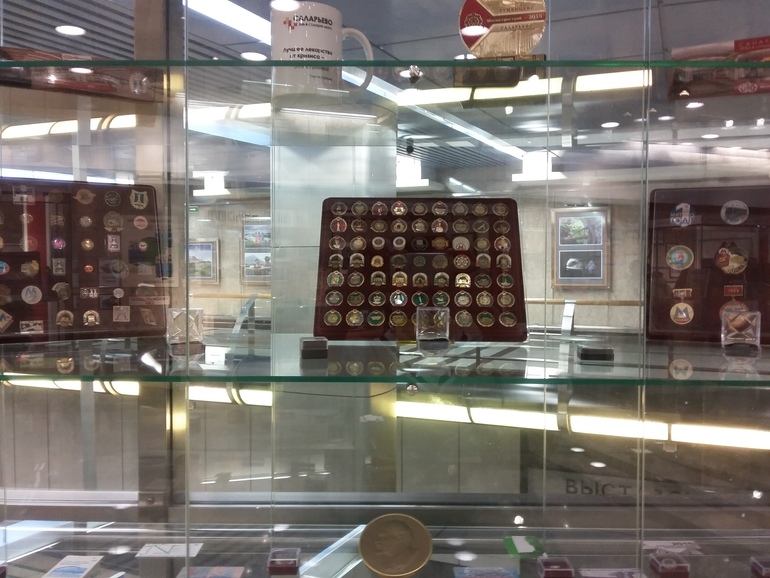 Есть витрины с наградами, кубками, находками. Очень интересно! А внизу за стеклом идут настоящие поезда метро: