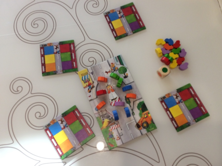 Игра простейшая: ставим все машинки на перекрёсток ("устраиваем пробку"), и каждый игрок берет себе парковку. После этого по очереди кидаем кубик, и согласно выпавшему цвету берём машинку с перекрёстка и ставим её себе на парковку. Если у игрока уже есть машинка такого цвета, он передаёт ее соседу слева. Если у всех игроков уже есть машинка такого цвета, она возвращается на перекрёсток. Игра заканчивается, когда у одного из игроков вся парковка будет заполнена. Он и становится победителем.