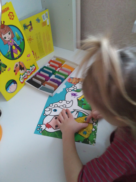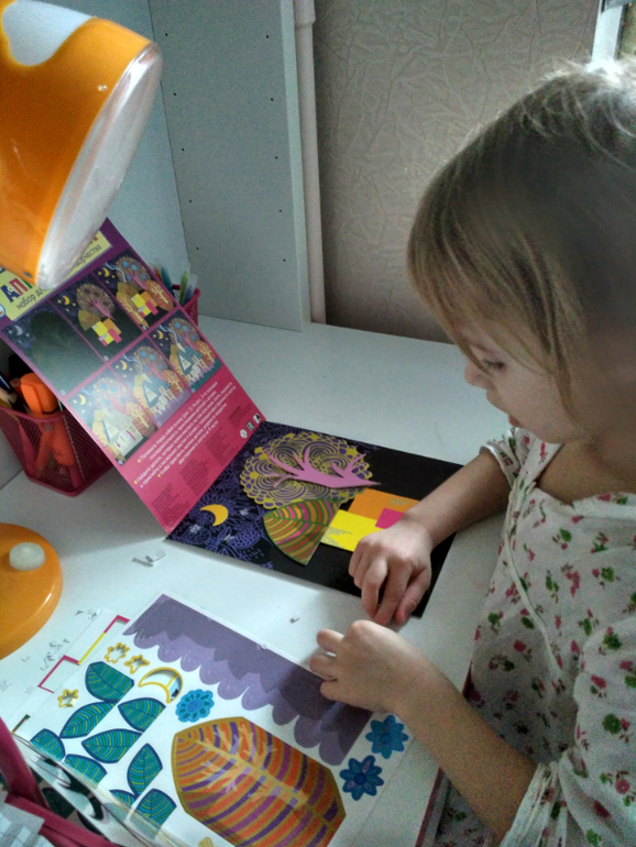 Я вот недавно ещё заказала объёмную аппликацию, раскраски пластилином, гравюру. Наборы недорогие и занимают надолго.