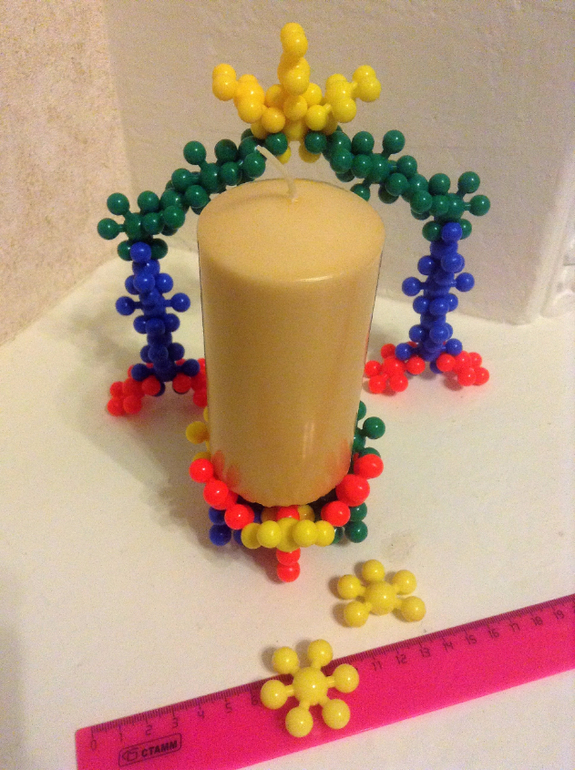 Тут подсвечник-гнездо-подставка-ёмкость в зависимости от задач. На следующей фото эта же конструкция в перевёрнутом виде, Вика сказала, что это Иглу. Ещё собирали корону и браслет, разница была в размере.