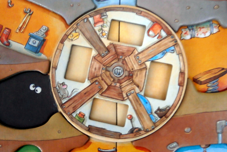 Игрок бросает кубик и перемещает своего хомяка на соответствующее количество клеток (комнат или мест) в любом направлении. Лифт, вагончик, гондола и колесо считаются как одна клетка (место), однако их перемещение за ход не считается.