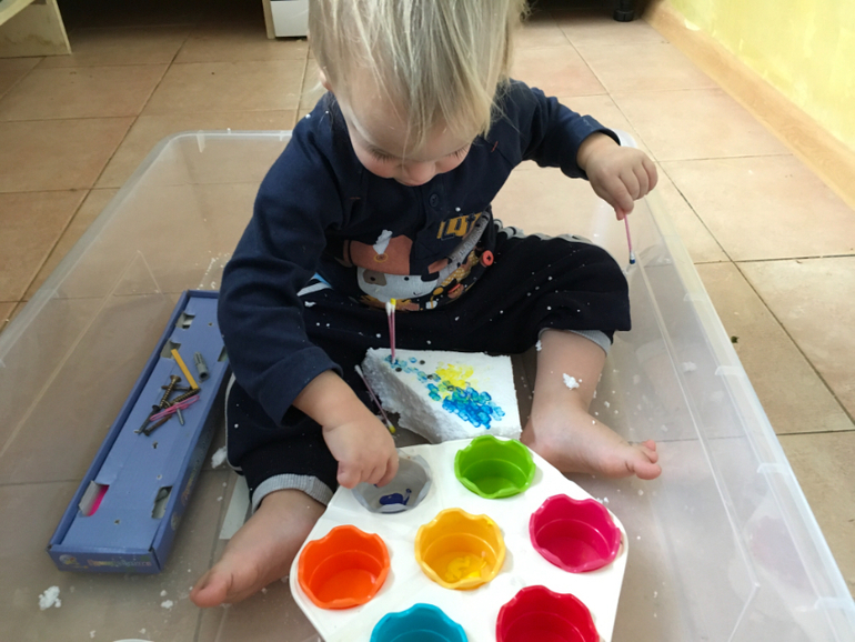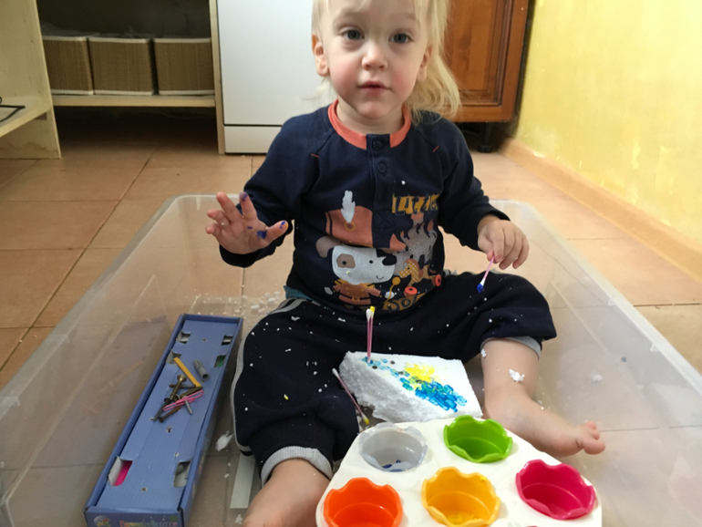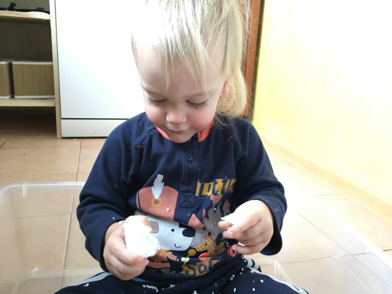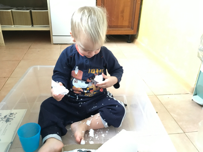 Прошерстить пенопласт в процессе очень полезно для маленьких пальчиков.