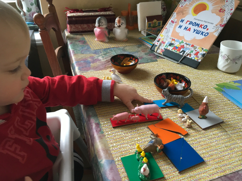 Фигурки животных можно легко ввести в любую обучающую игру и обыграть самое скучное пособие. Наш счёт.