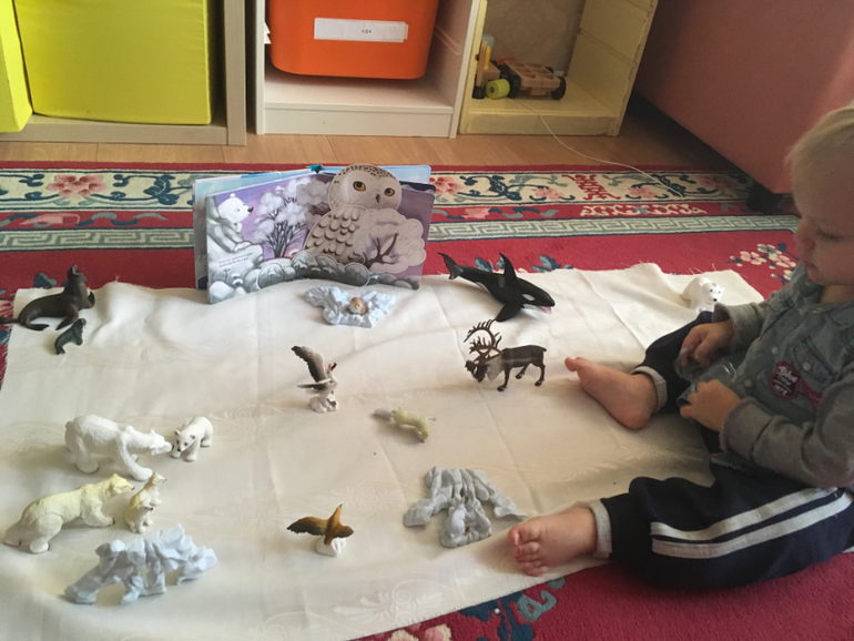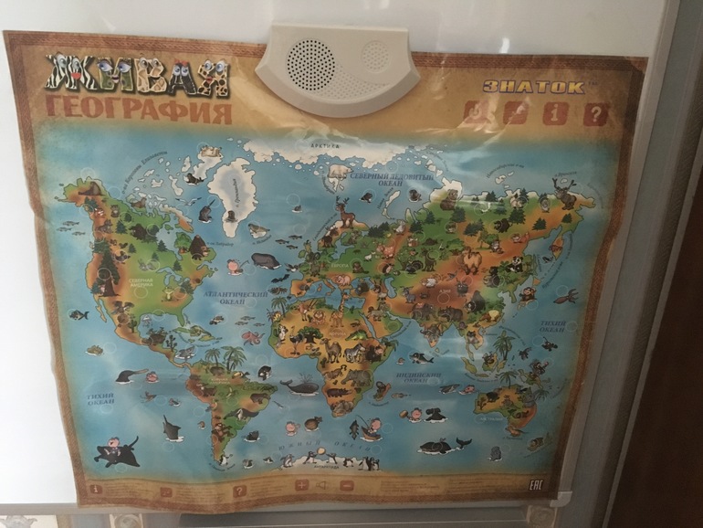Ну и творческие , масштабные игры. В нашем случае вся подготовка происходит в процессе игры. Последнее время заинтересовались вот такой озвученной географической картой. Подбираем ее обитателей, ну и , естественно, изучаем географию.