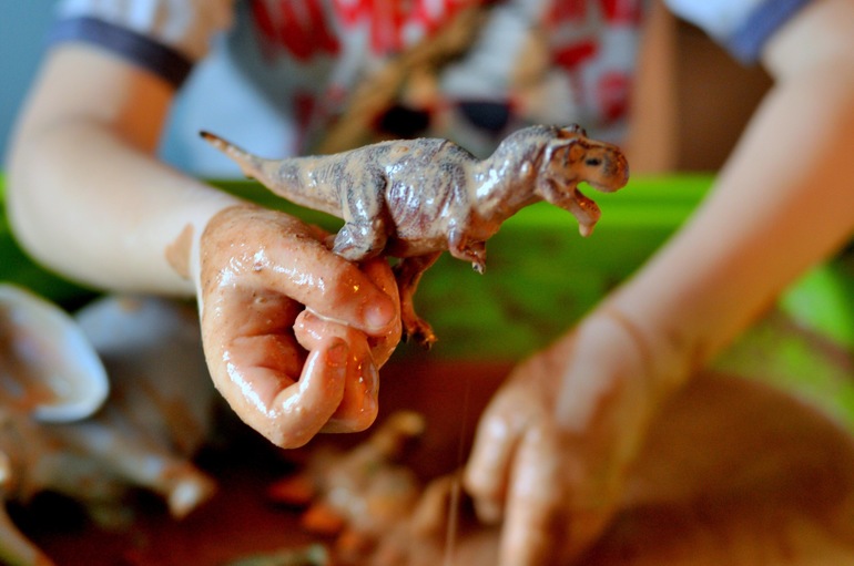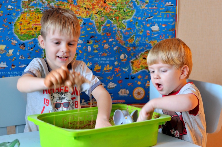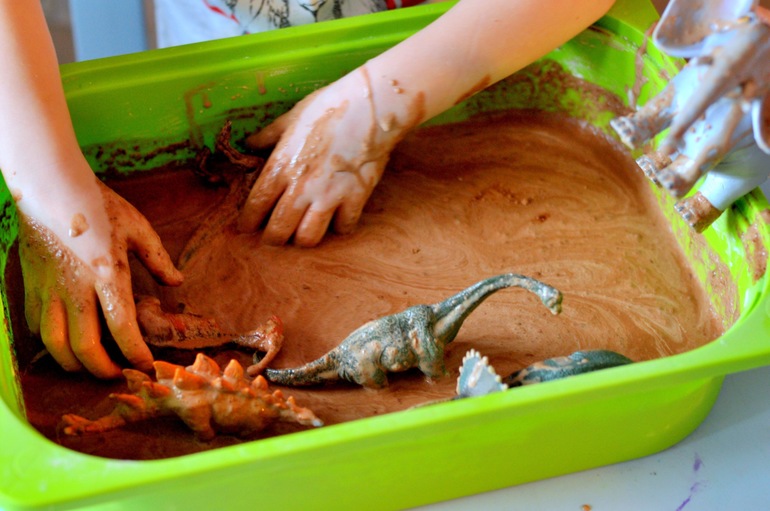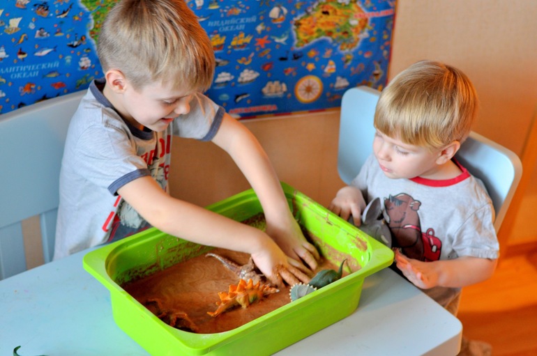 Дети не хотели вынимать руки ) Они мяли её руками и смотрели, как она стекает с пальцев, с динозавров и со слона😆.