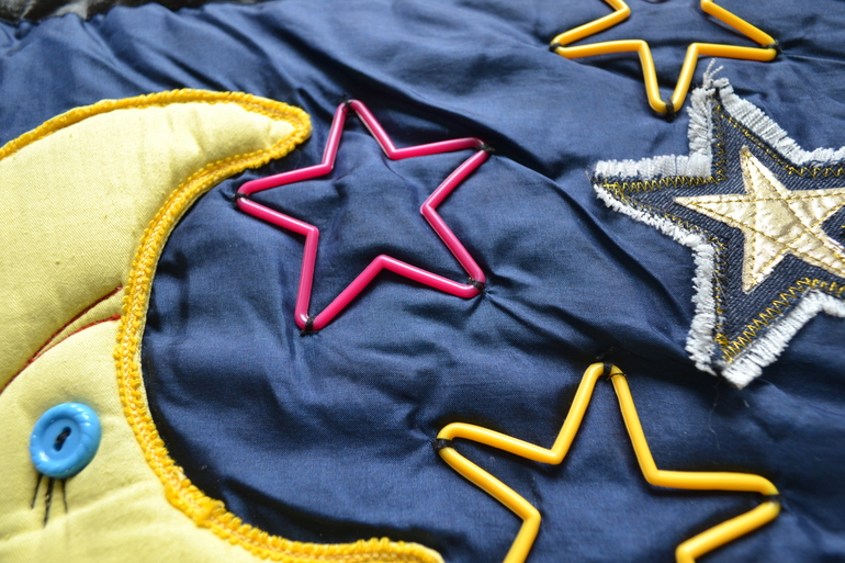 Ночь. В месяце паралон. Звездочки из твердой резины, на тот момент продавались в магазине "фикспрайс":