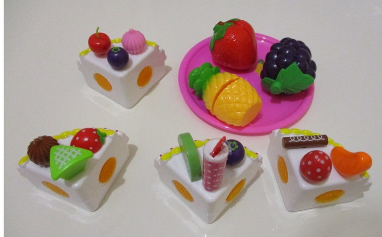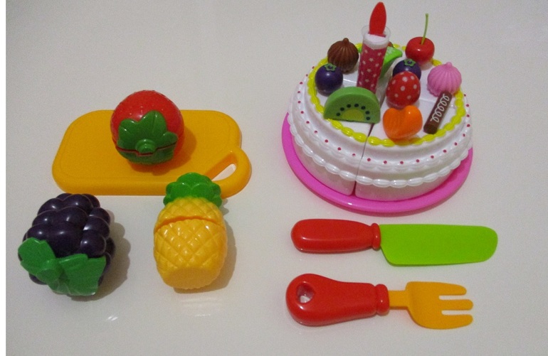 Хочу отметить отличное качество самого пластика и изготовления самого тортика. Пластик очень плотный и при игре не прогибается, отсутствует какой-либо посторонний запах. Фрукты, тортик и другие аксессуары, входящие в набор очень яркие. Набор особенно понравился старшей дочке (кормит тортиком игрушки и нам предлагает с чаем попить, а также фигурками из пластилина из наборов ПлейДо украшает тортик), младшая в основном или с липучками играет, или украшения на тортик вставляет, тем самым развивая мелкую моторику рук.