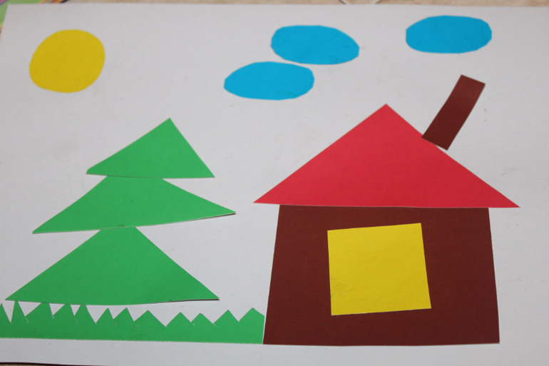 Эту аппликацию мы мучили 2 дня, зато теперь с подобными картинками мы быстро справляемся, также повторяем фигуры. Вообще я заметила, что его привлекают картинки из различных геометрических фигур.