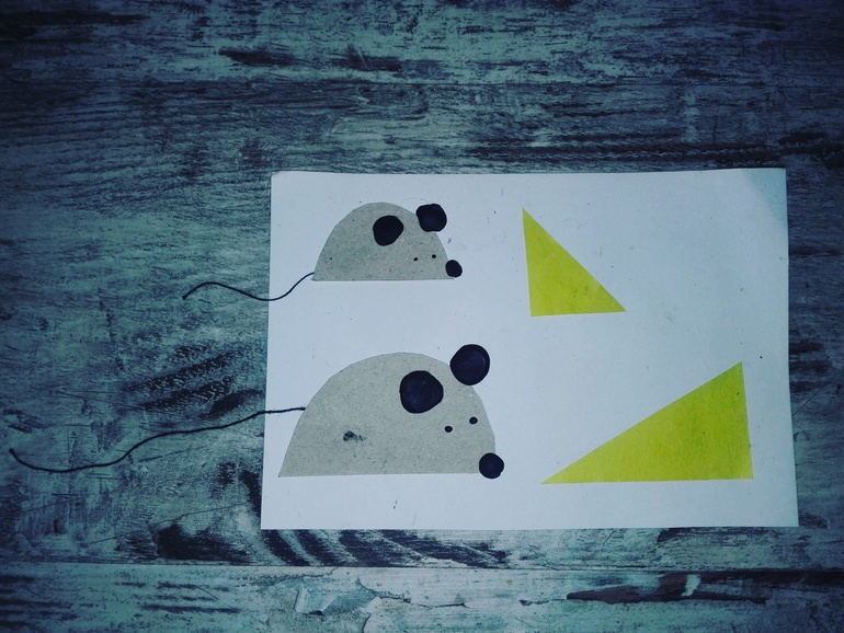 Мыши и сыр (бумага, пластилин, нитки)