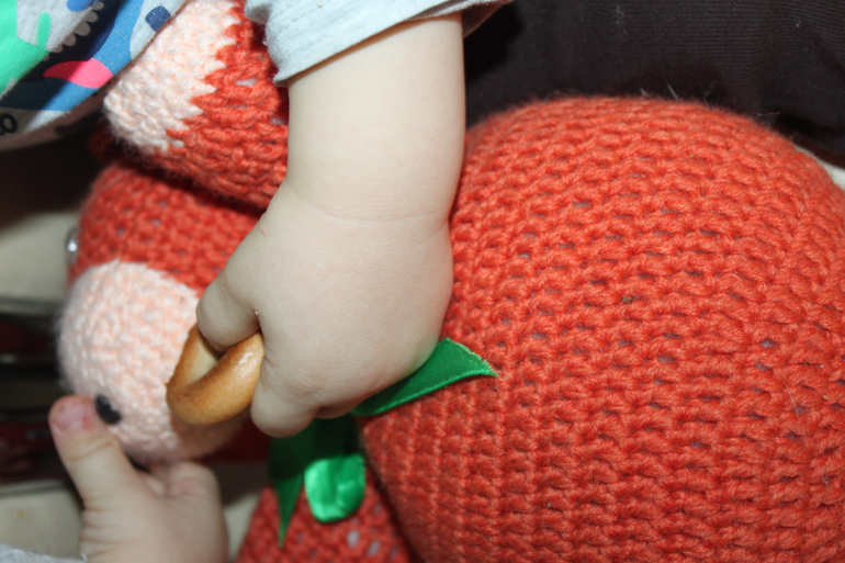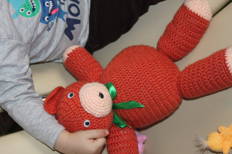 У многих детей есть любимые игрушки. У Ярика медведь Михаил Потапыч, с ним он ест, кормит и иногда спит. Медведя нам связала родственница мужа.