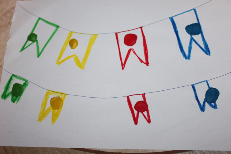 Здесь к каждому флагу нужно приклеить пластилин соответствующего цвета. Ярик с этой задачей уже с легкостью справляется. Параллельно повторяем понятия "меньше-больше". Сейчас он Яромир уже знает красный, желтый, зеленый, синий, оранжевый, черный, белый, фиолетовый, путается еще с голубым цветом и розовым. Кстати, понравилось изучать цвета на проезжающих мимо или стоящих во дворе машинах))) уж очень полюбились ему желтые такси и синяя новая маршрутка, кричит и показывает мне пальцем на них))