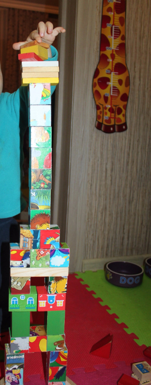 Самое интересное, конечно, рушить))) Такую штуку и купить можно, но мы сделали сами. У кубиков нет дна, поэтому их удобно хранить, сложив один в другой.