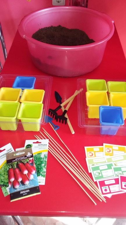 Сегодня мы сажали редиску, петрушку, салат, лук