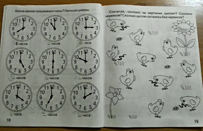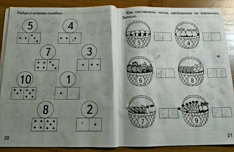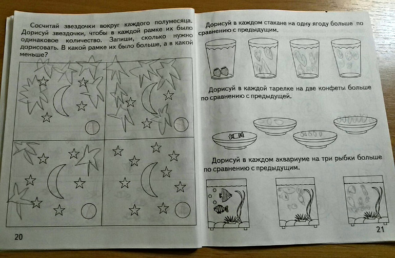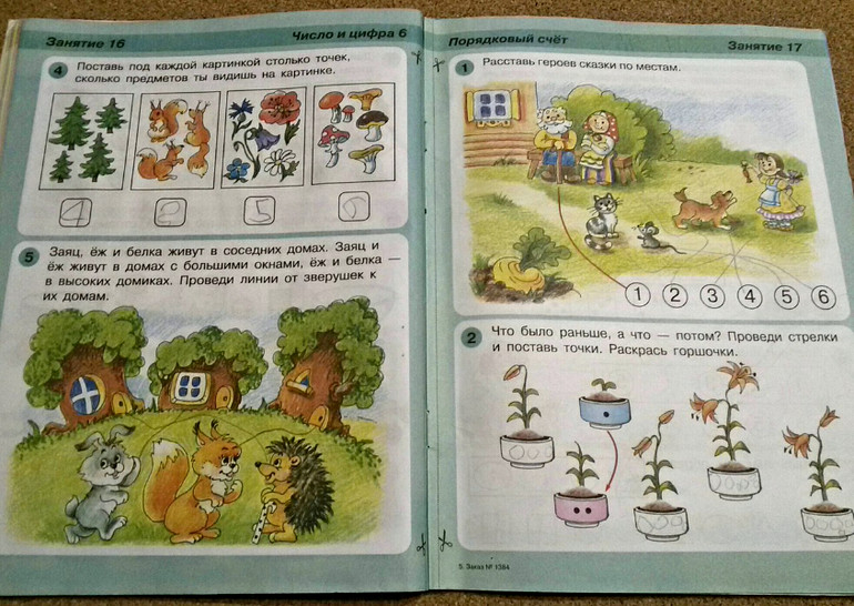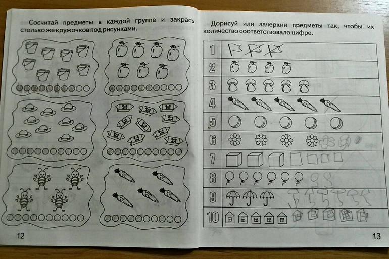 Также есть задания на порядковый счет, когда нужно дописать пропущенные числа или написать цифры, соотнося их с величиной слоника от самого большого до самого маленького. На мой взгляд, в функцией счета тетрадка справляется хорошо.