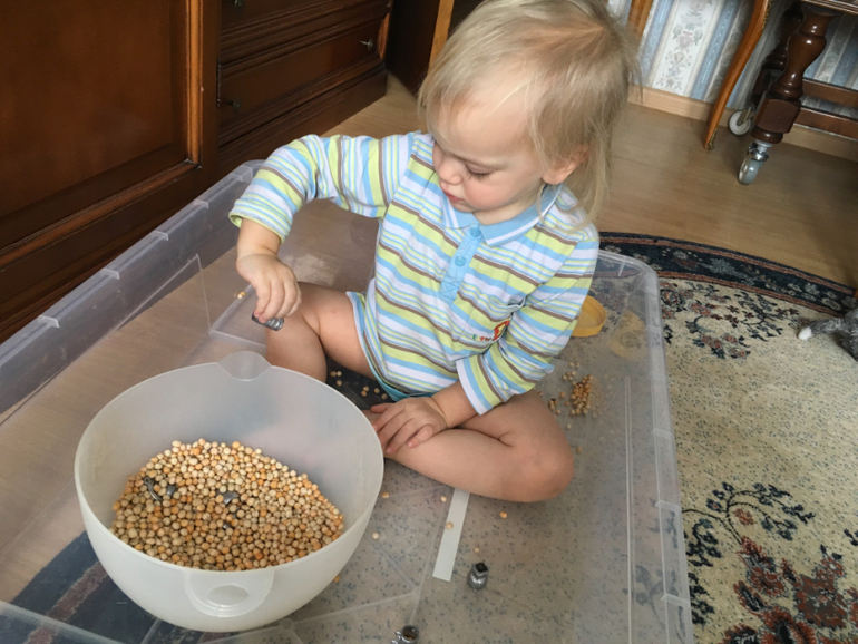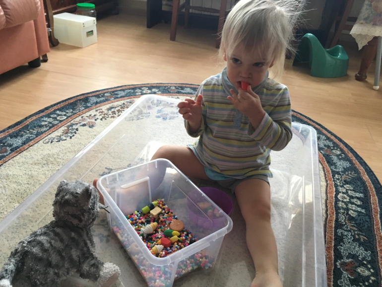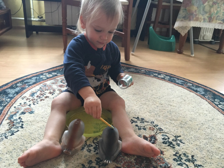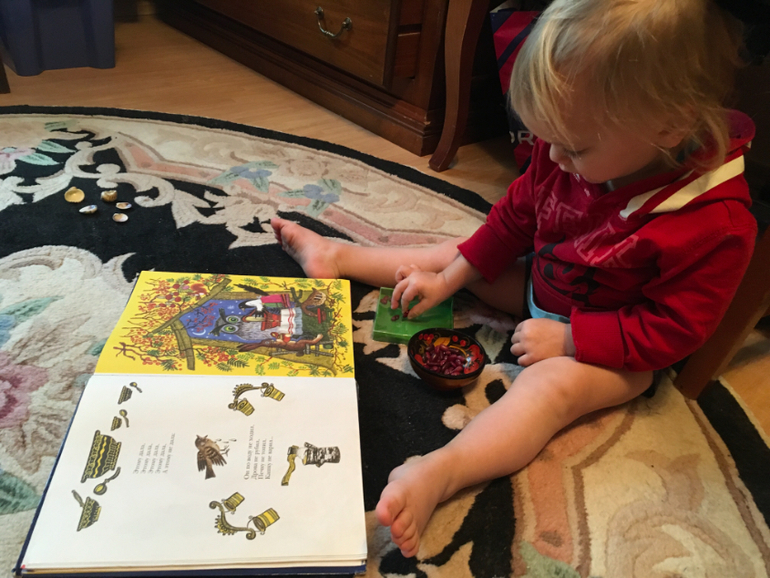 Появился интерес к потешкам. Решил подкормить обиженного фасолькой.