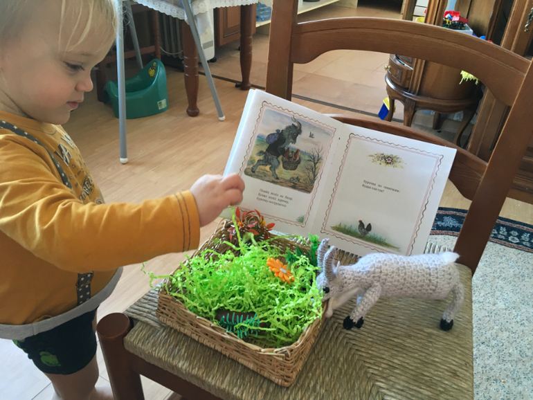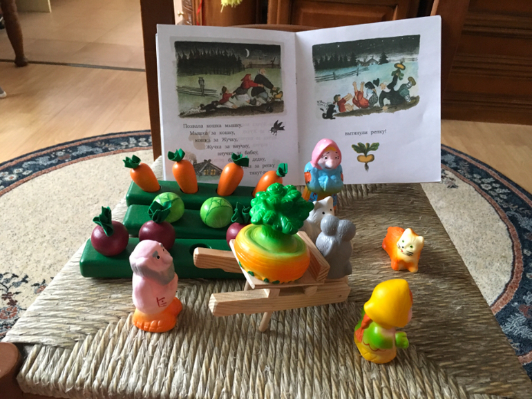 Английский цветёт и благоухает, замучил нас словарём 100 слов, пора расширяться. Ввела в этом месяцу сказку про колобка параллельно с нашим, слушали запись на инглише и "читали" одновременно.