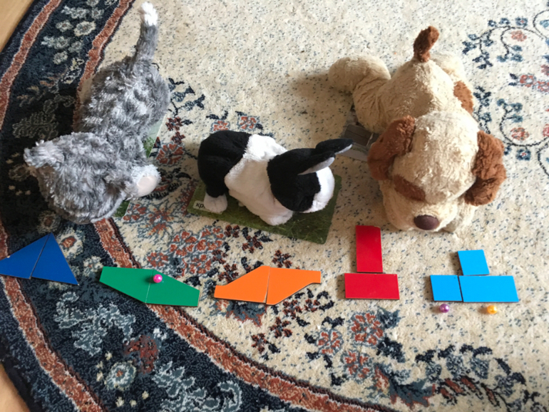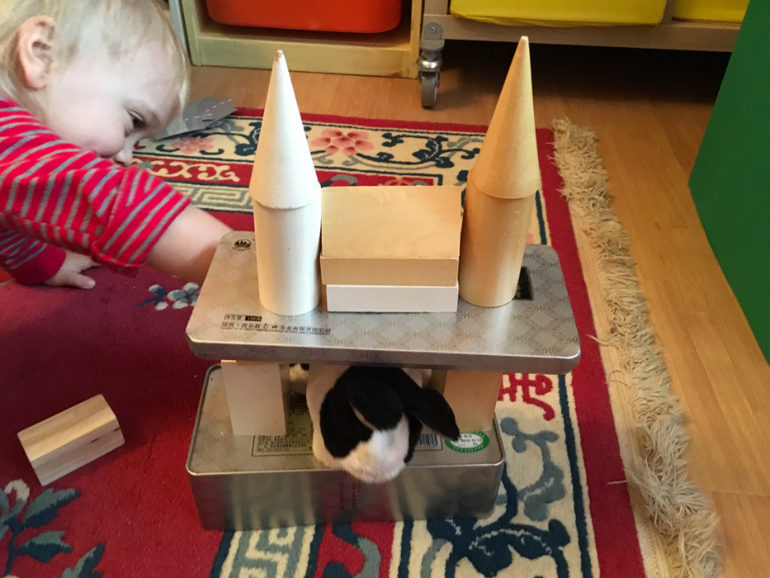 Знакомились с геометрическими телами. Строили нору для кроля.