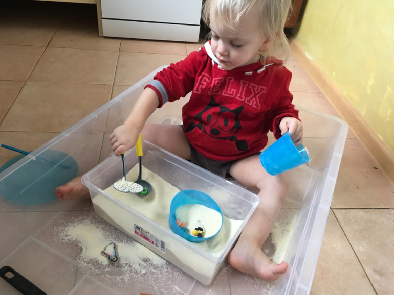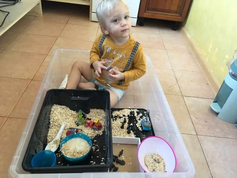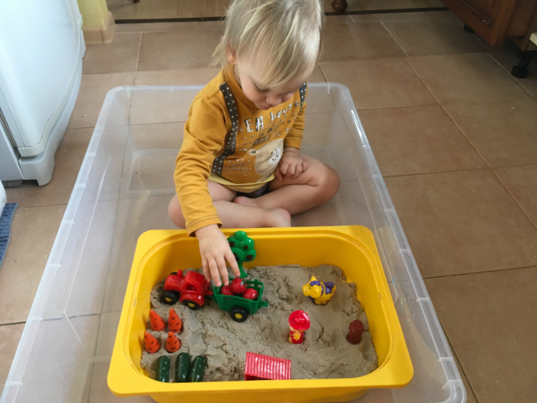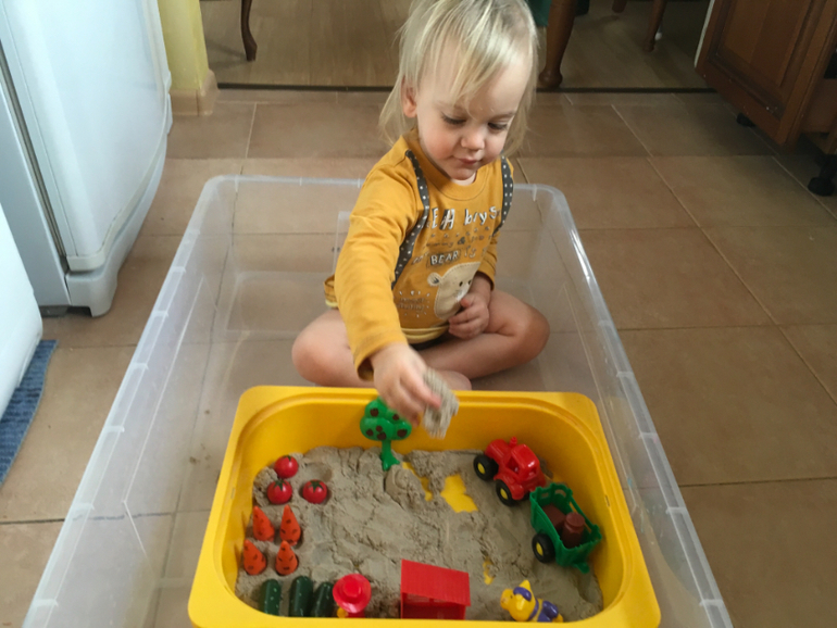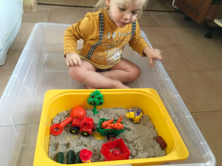 Воспроизвели фермерский дворик. Давно не доставали кинетический песок. Очень понравился. Долго изучал консистенцию, перебирал, вообщем минут 40 релаксировал.. жалко, что его больше не купить..